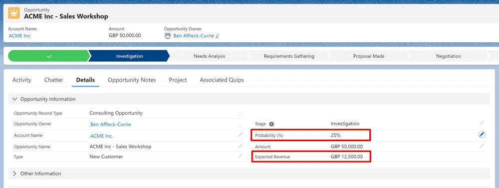 Calculating Expected Revenue in Salesforce