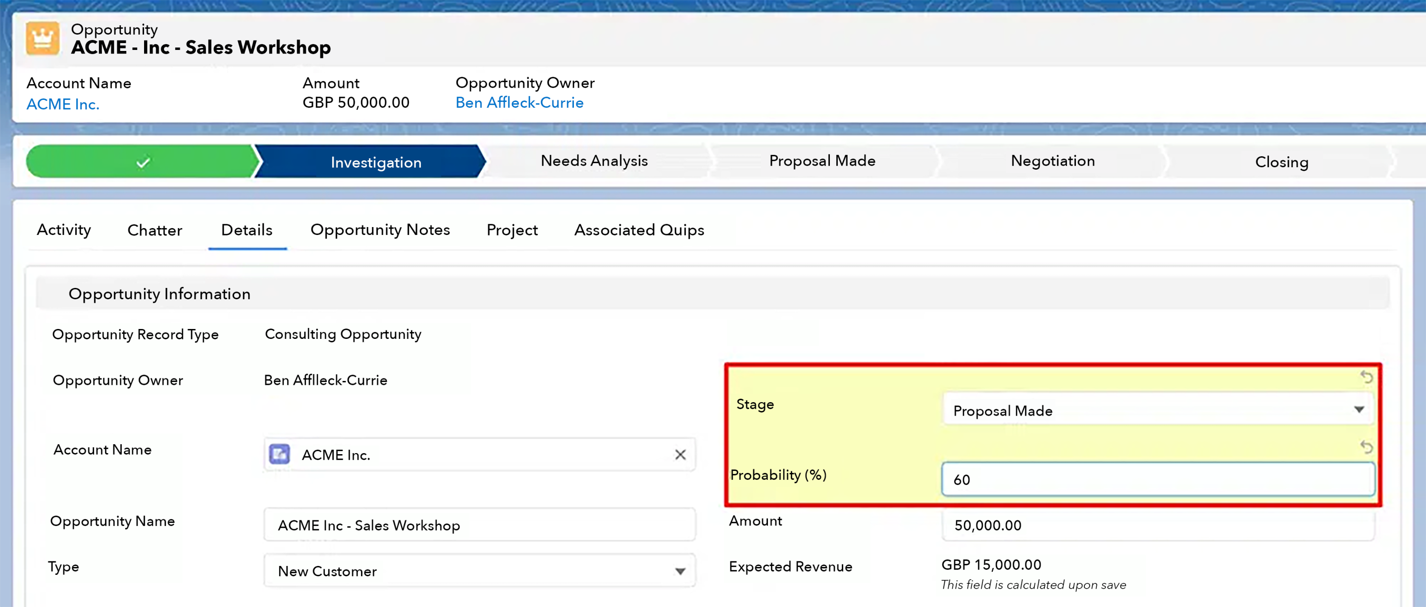 Manually Adjust the Opportunity Probability