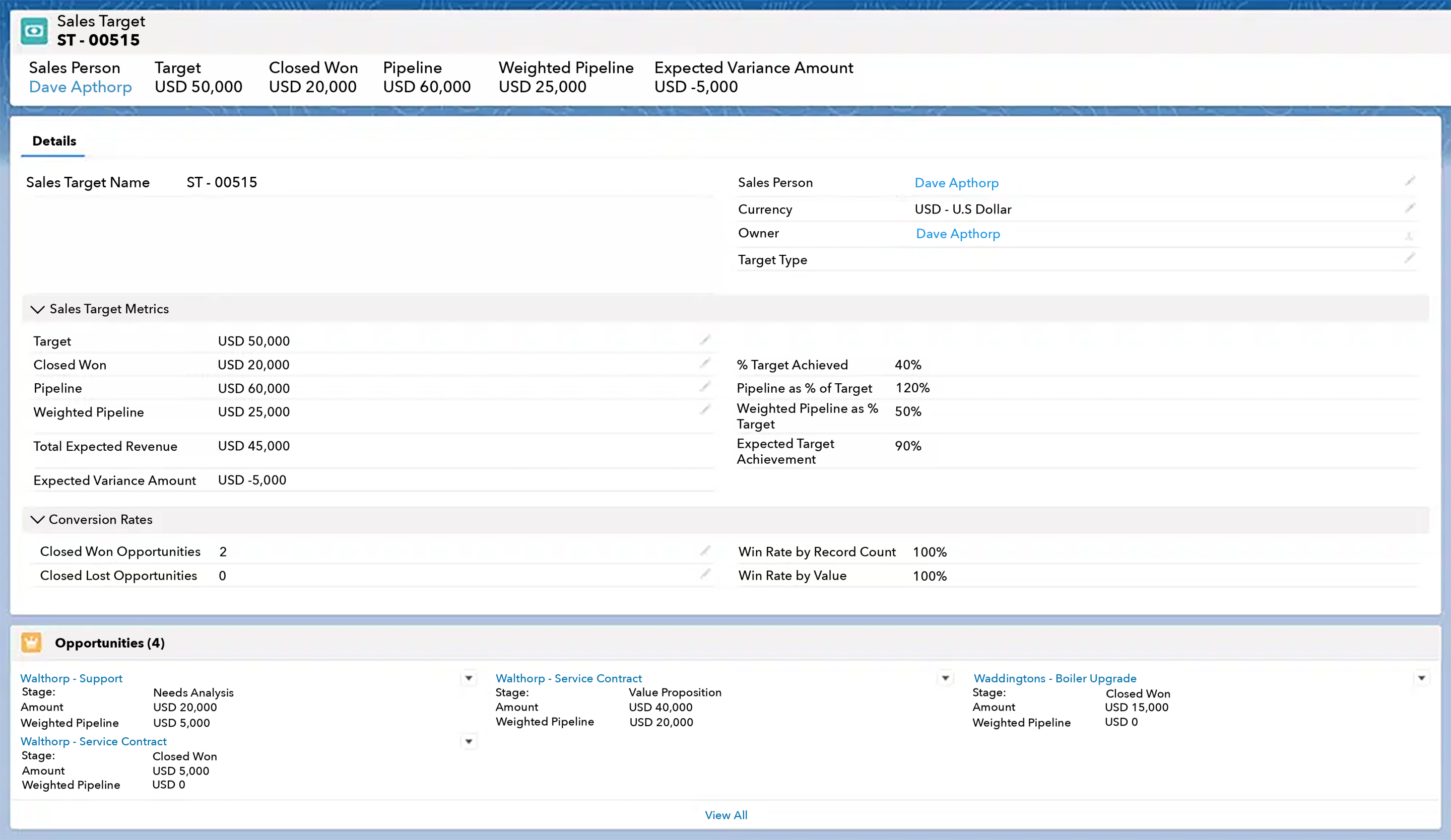 - How to use Expected Revenue for target tracking and measuring pipeline coverage.