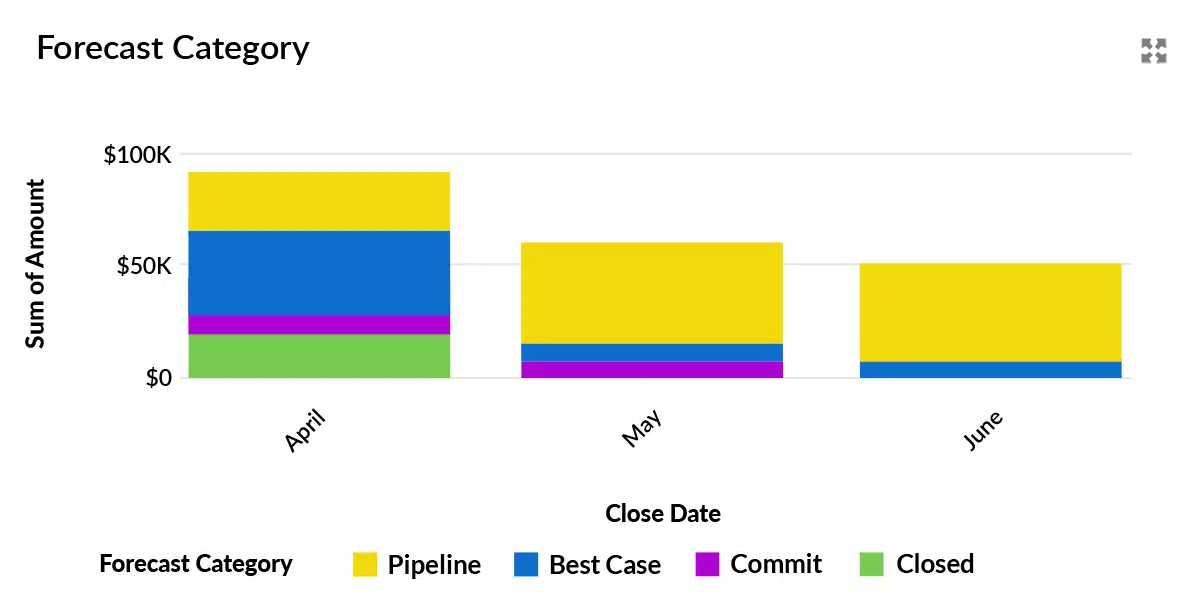 Nevertheless, Forecast Categories are a way to make pipeline reports more readable and useful. That’s because each category can reflect several pipeline stages.