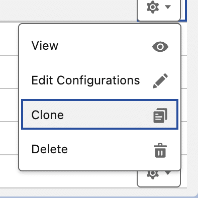 - Alternatively, you can select “Edit Configuration” from the menu and then select the “Clone” button for the configuration edit page.