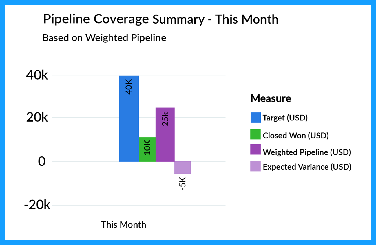 - Pipeline Coverage Summary for Next Month. A high-level view of the pipeline coverage compared to the revenue target.