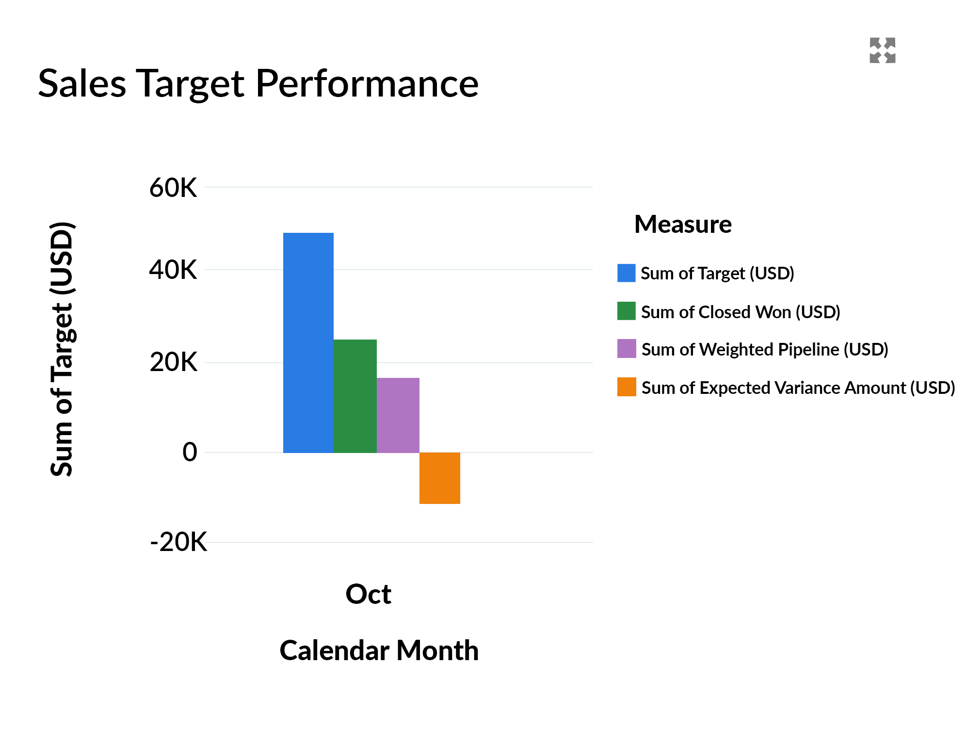 For example, in this case, we can see that the Target for the quarter is $100,000, and we have $40,000 in won revenue.