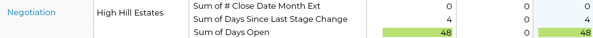 - The Number of Days Open and the Number of Days since the Last Stage Change are the same.